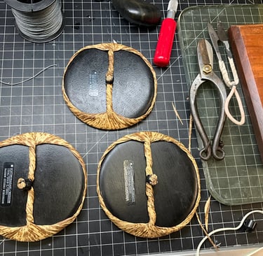 What is a Baren? - A baren is a round, disc-like tool traditionally made from bamboo and rice straw, although modern variations may incorporate materials such as plastic. It serves as a pressing tool for transferring ink from the woodblock to the paper during the printing process. In Mokuhanga, the pressure applied by the baren ensures a clean and even impression of the ink, allowing for the subtle nuances of color and texture to emerge.